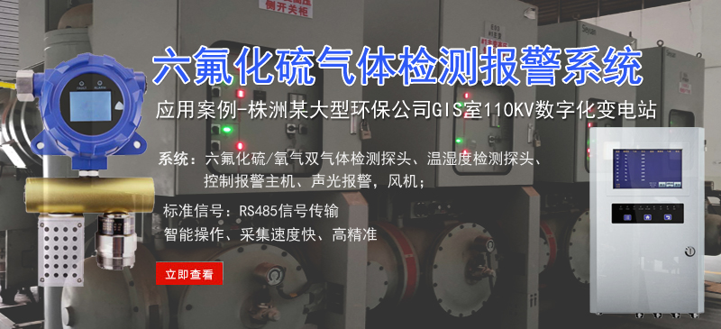 株洲某大型環(huán)保公司GIS室110KV數(shù)字化變電站;系統(tǒng)組成:六氟化硫 氧氣雙氣體檢測(cè)探頭、溫濕度檢測(cè)探頭、控制報(bào)警主機(jī)、聲光報(bào)警,風(fēng)機(jī);